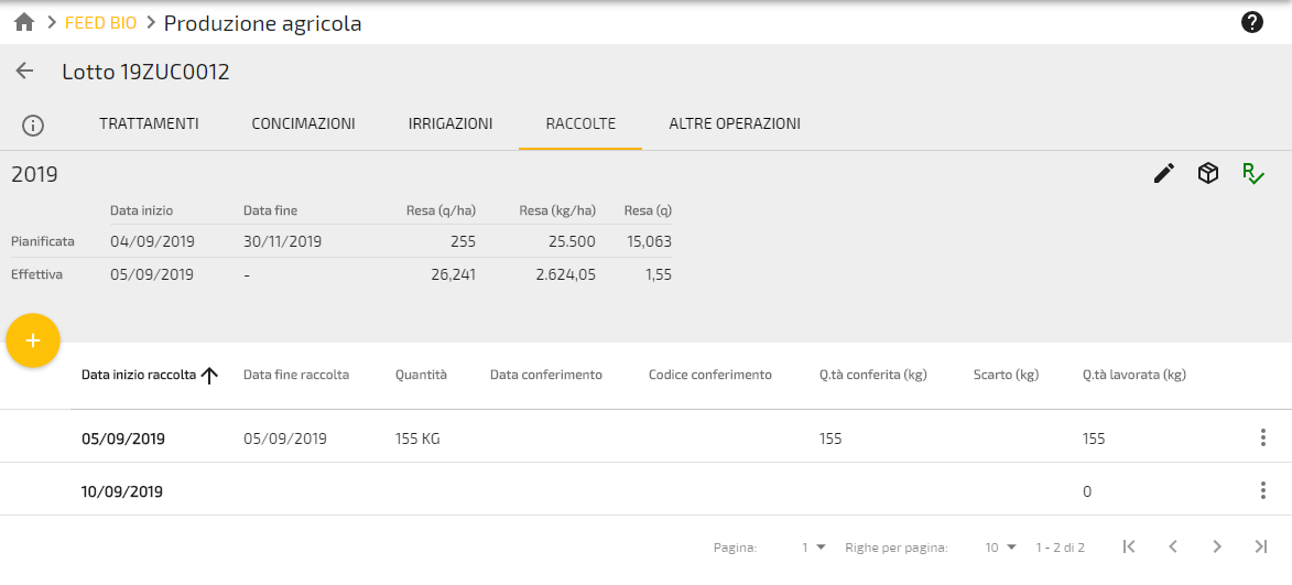 Sarà possibile inserire dei dati di pianificazione e le rese previste, mentre l’inserimento delle singole raccolte rispecchierà la vecchia gestione.